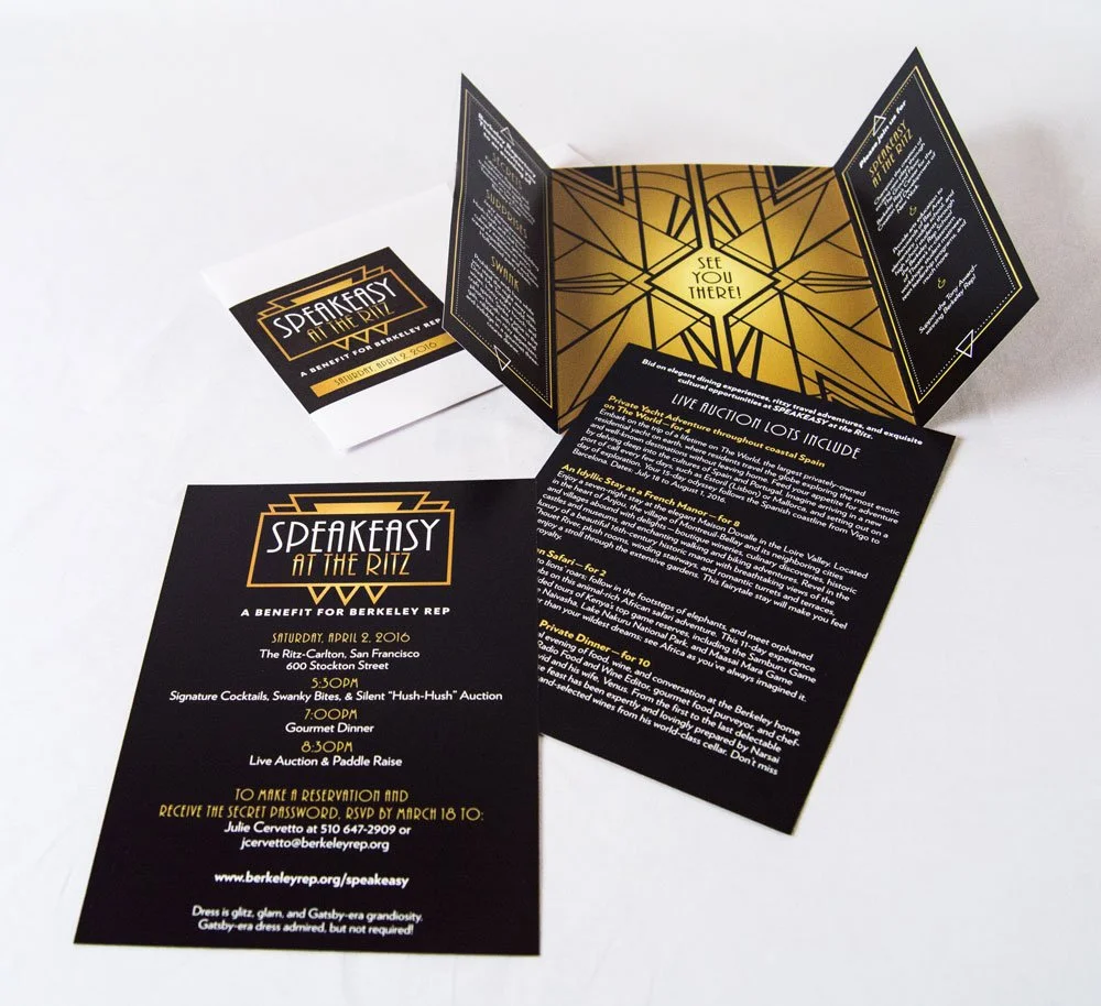 The Ask | Berkeley Repertory Theatre is an iconic and innovative non-profit theatre in the Bay Area, California. They host an annual gala to fundraise for their work. We were tasked with event branding, environmental design, print invitations, and print advertisements.